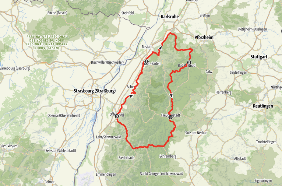 Entdecken Sie einen der größten Naturparke Deutschlands per Rad! Der nach den Richtlinien des ADFC beschilderte Radweg zeigt Ihnen dabei die ganze landschaftliche Vielfalt des Naturparks. Entdecken Sie breite Schwarzwaldtäler, die Vorbergzone mit ihren Reben und Streubobstwiesen, wilde Flüsse und einzigartige Höhenlandschaften. Der Naturpark-Radweg ist in vier Etappen unterteilt, davon die erste von Freudenstadt nach Offenburg und die zweite von Offenburg nach Baden-Baden.